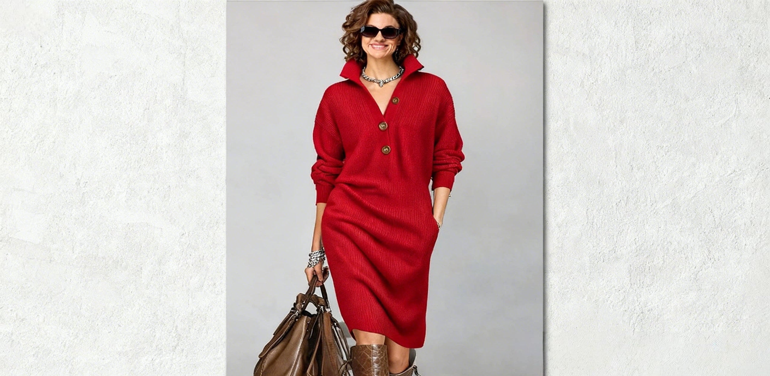 🔥【S-3XL】2025 Nowa europejska i amerykańska sukienka dzianinowa z kołnierzykiem w nowym stylu