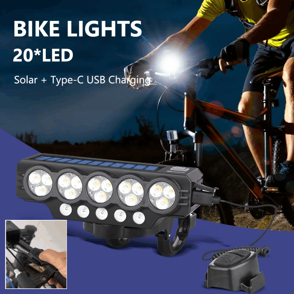 🚨💡 Solarna biciklistička svjetiljka s prednjim nosačem, USB punjenjem i zvučnikom, visoka svjetlina, noćno svjetlo za dugotrajnu vožnju biciklom