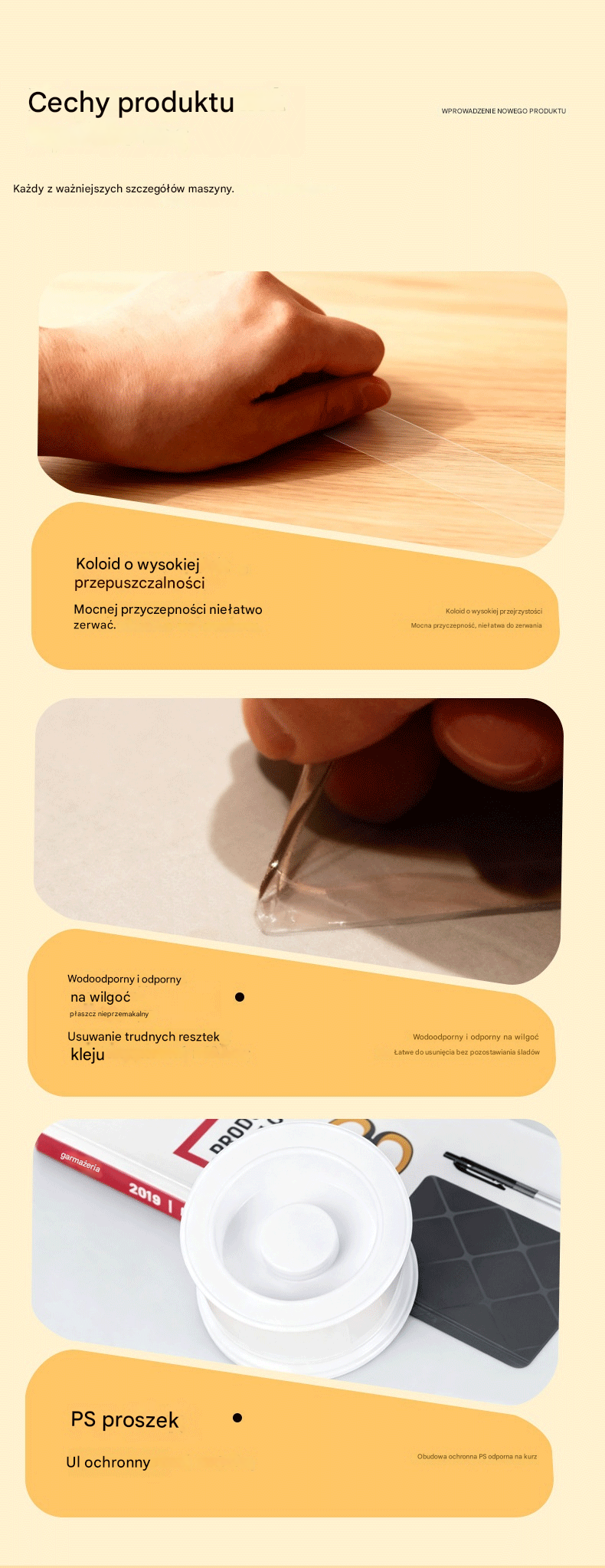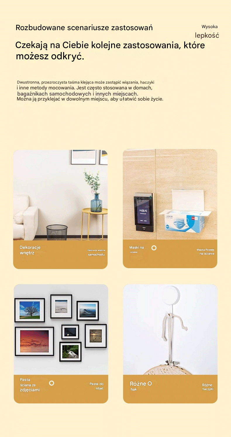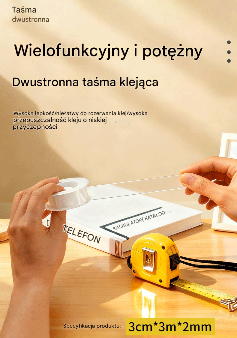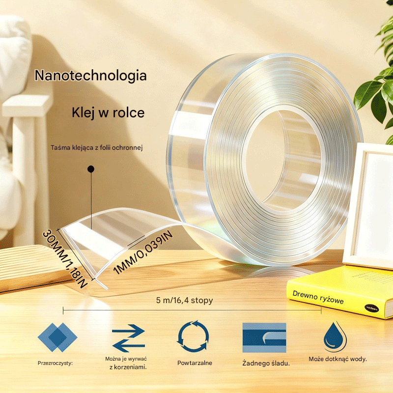 💧 【2 rolki】Nanoklejka dwustronna, wysoka przyczepność, przezroczysta taśma akrylowa, wodoodporna, odporna na kurz