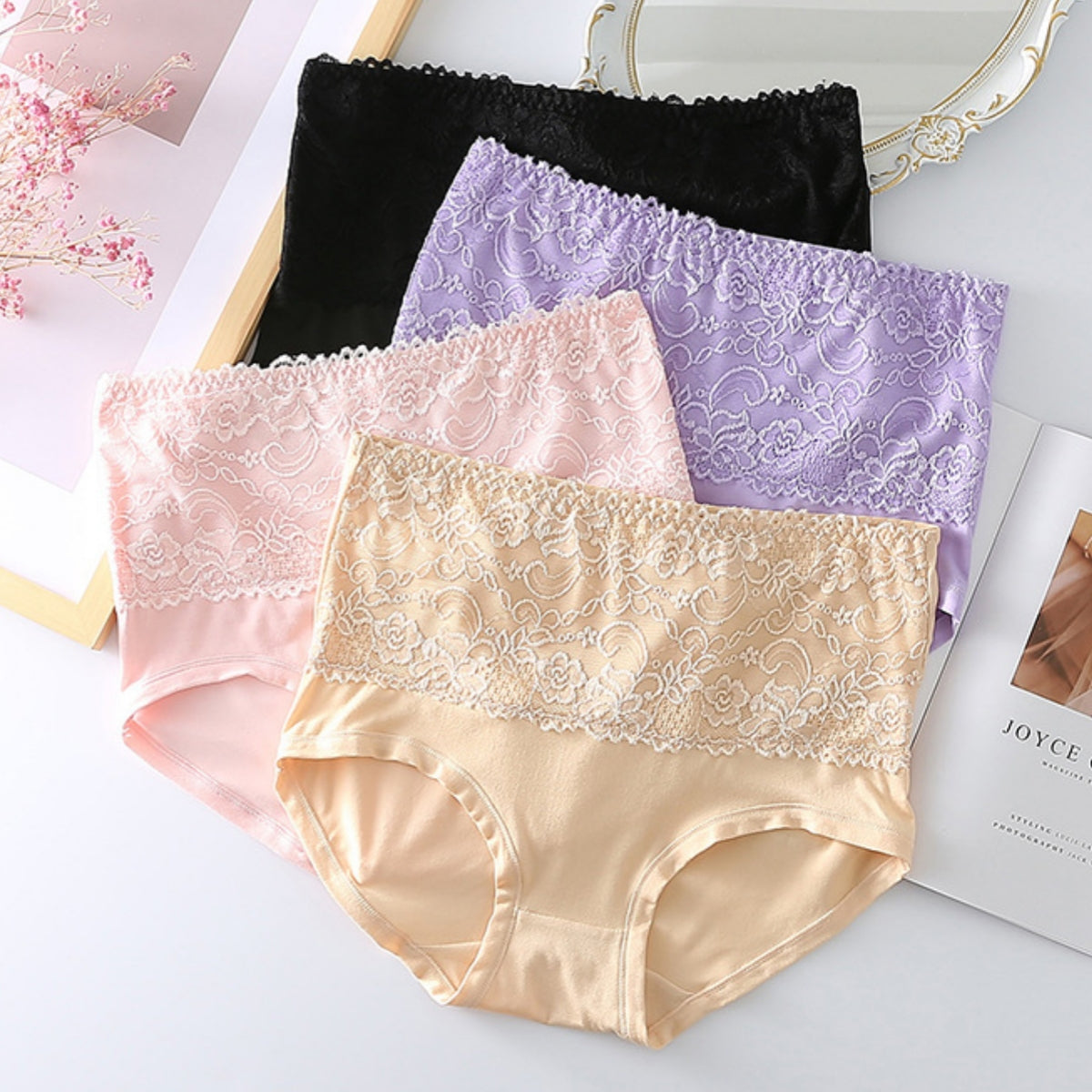 🔥【Kup 2, otrzymaj 2 gratis】🔥【4 sztuk】Duże damskie majtki koronkowe z wysokim stanem