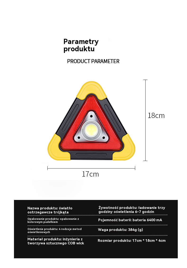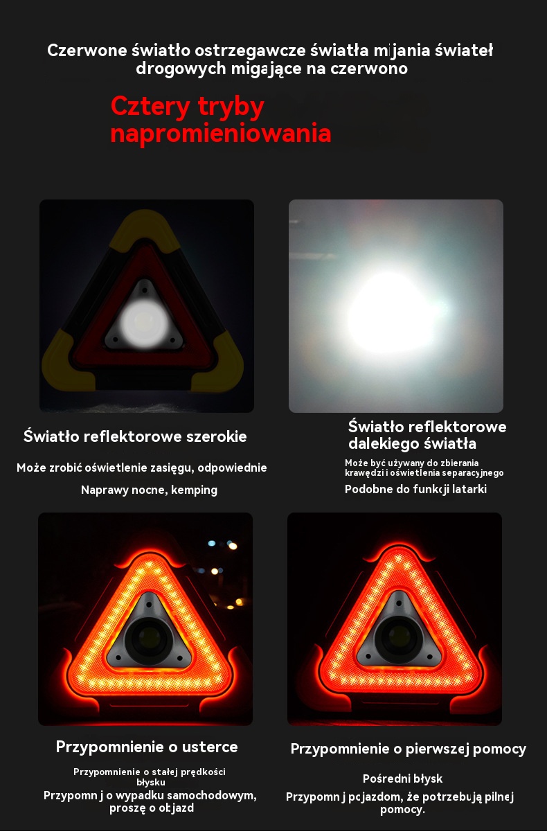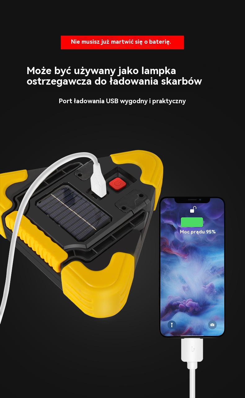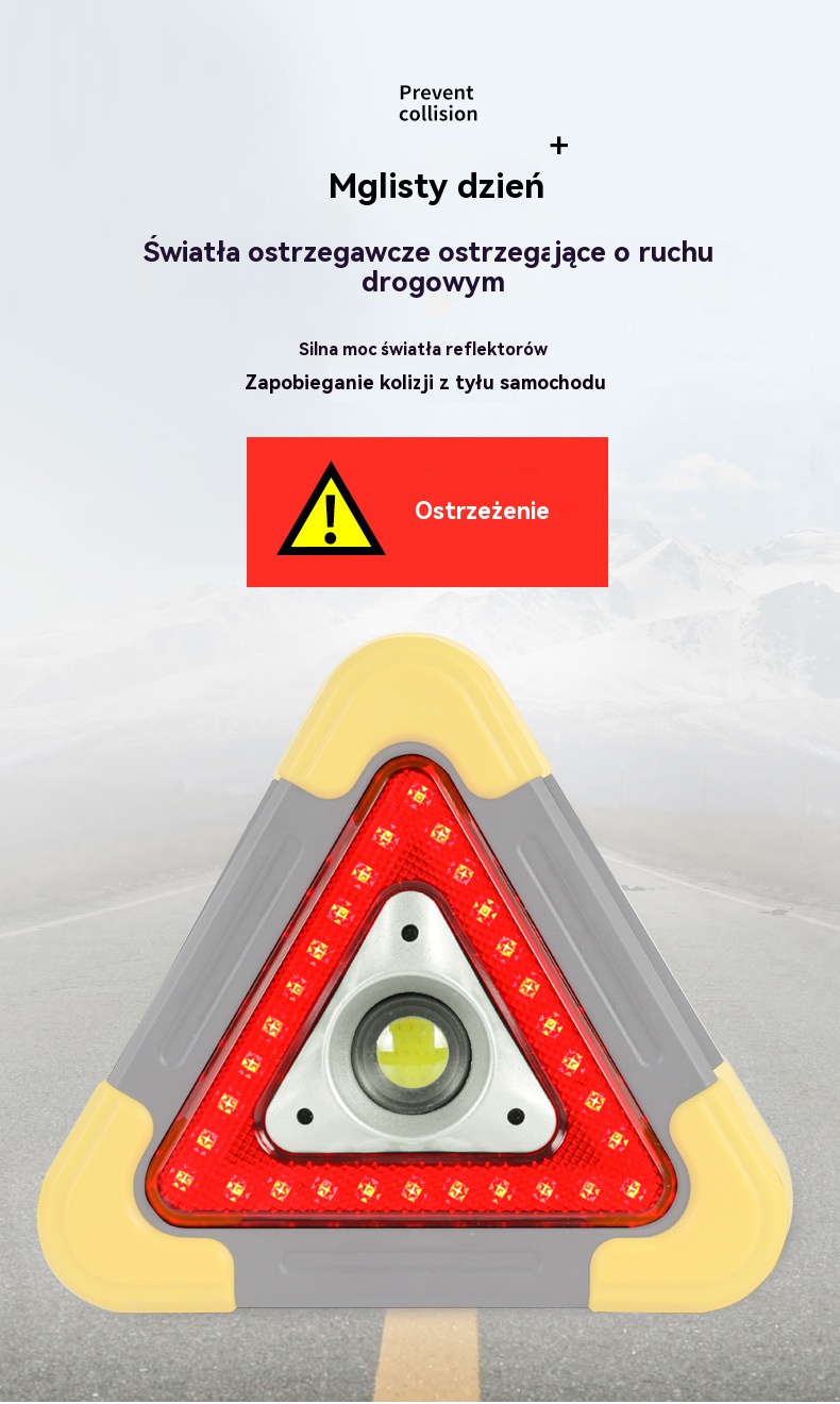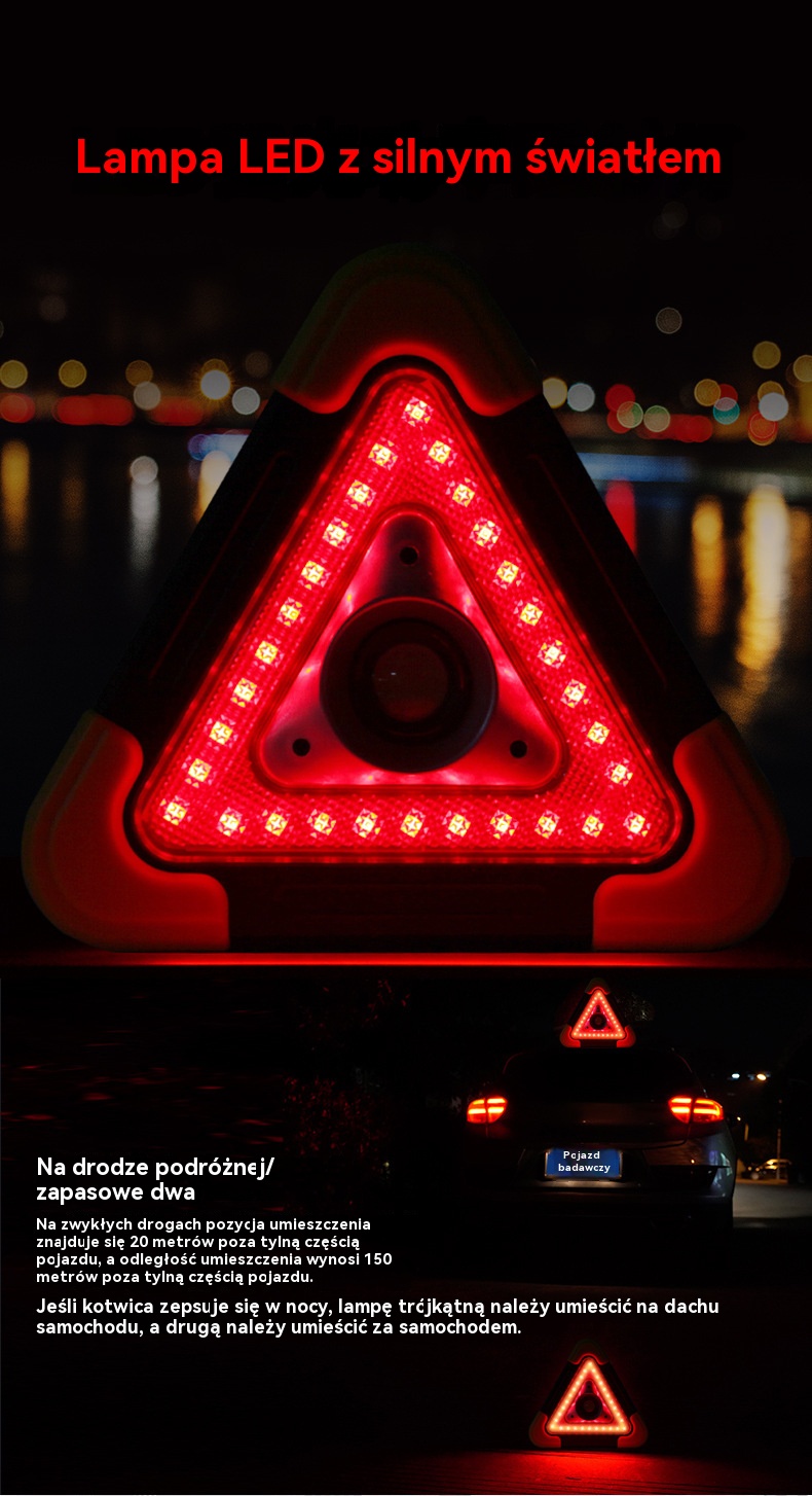 🔥Nowość 2025🔥Trójkąt ostrzegawczy z zasilaniem solarnym, trzy w jednym