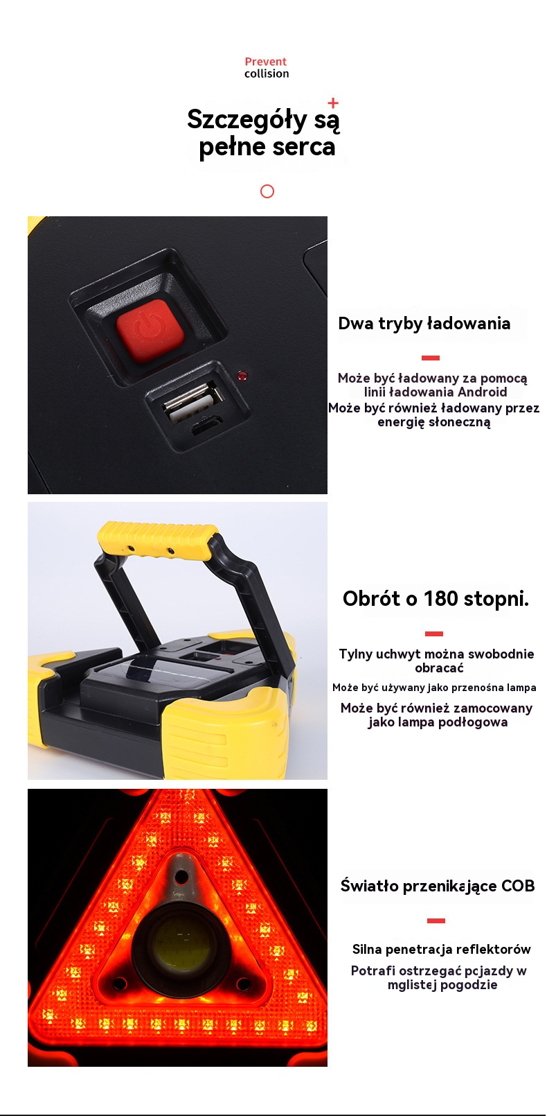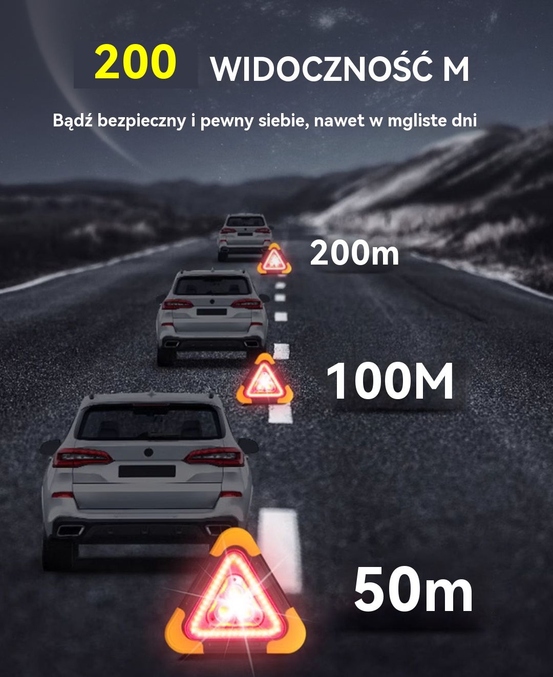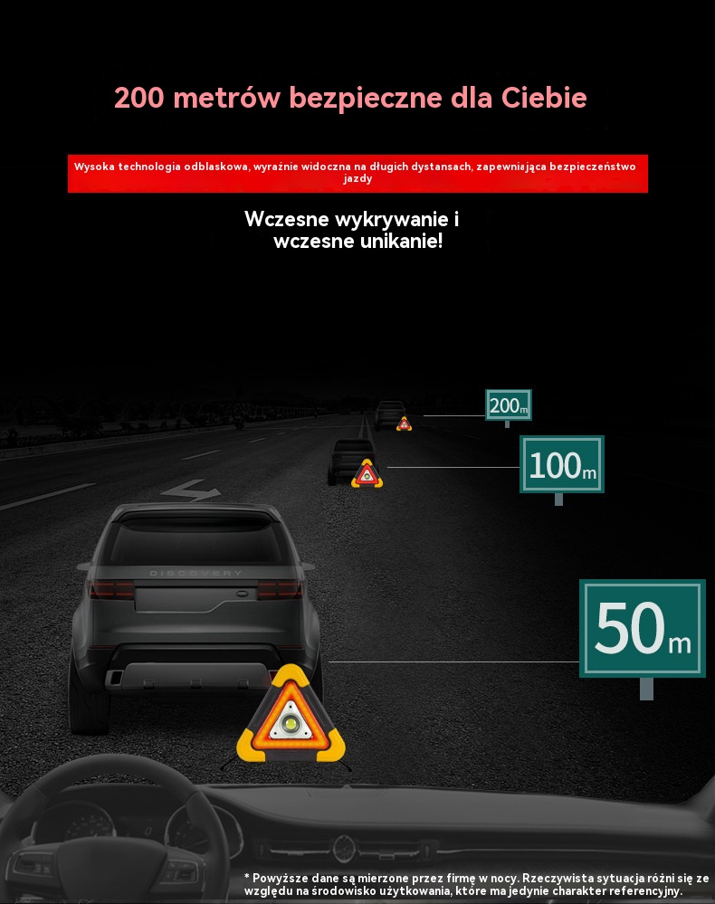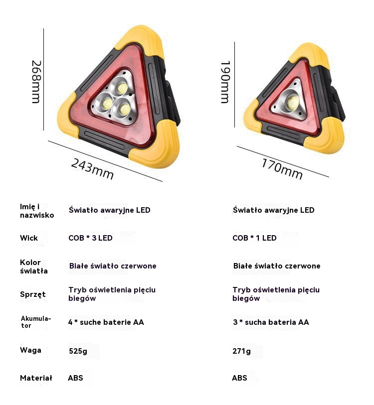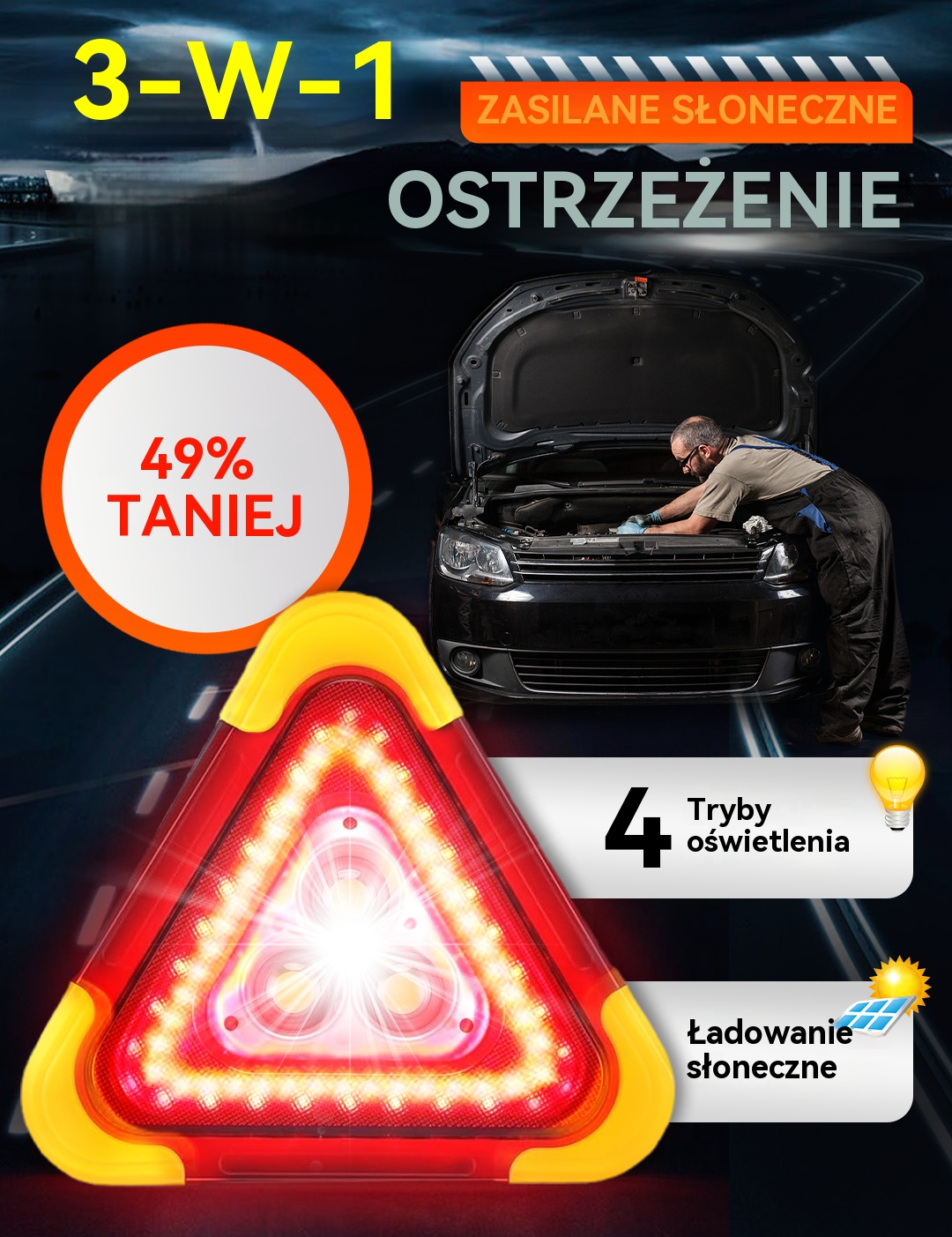 🔥Nowość 2025🔥Trójkąt ostrzegawczy z zasilaniem solarnym, trzy w jednym